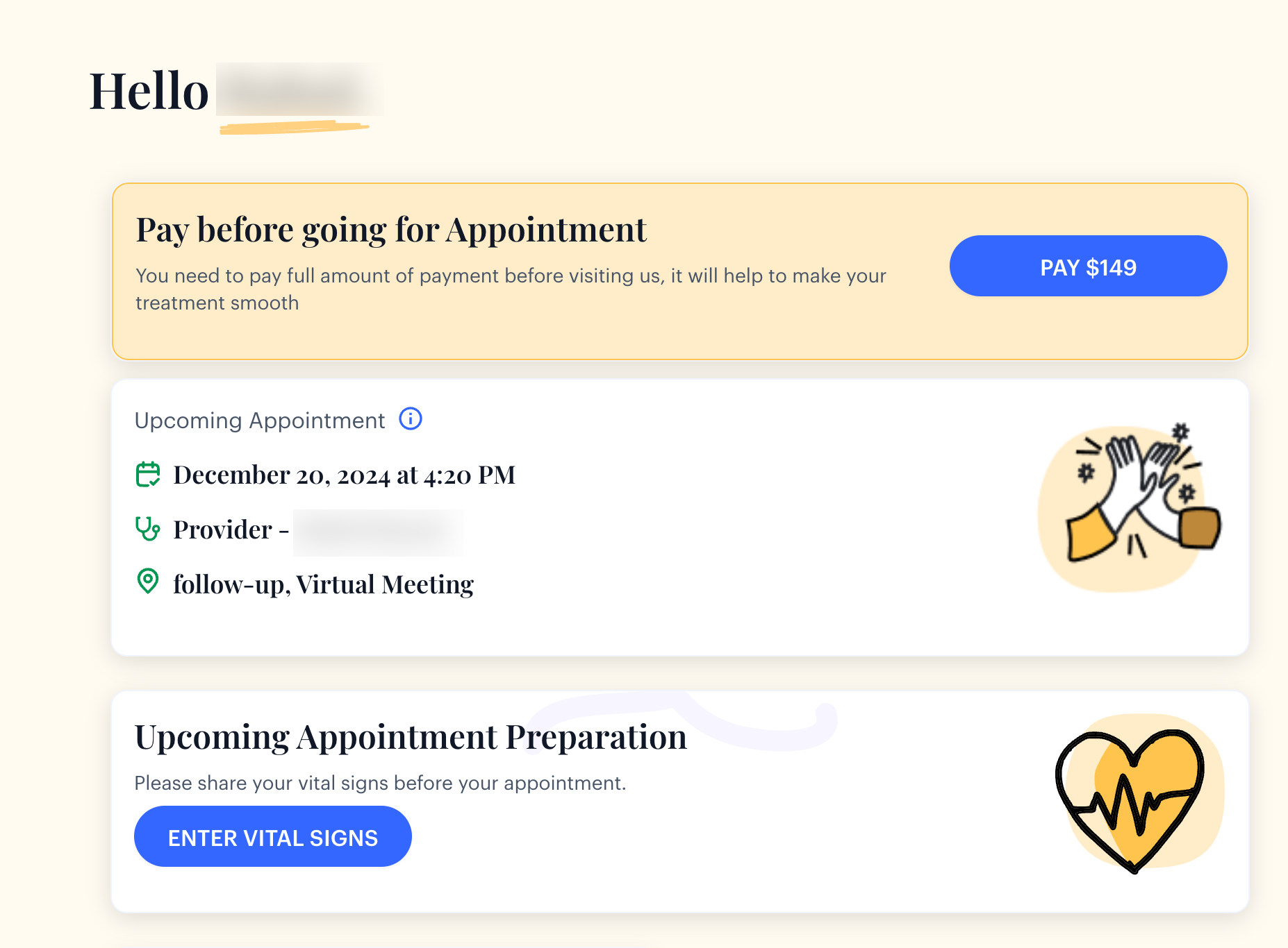 This guide walks you through setting up your payment method, securely managing your card information, and completing payment for your upcoming visit.