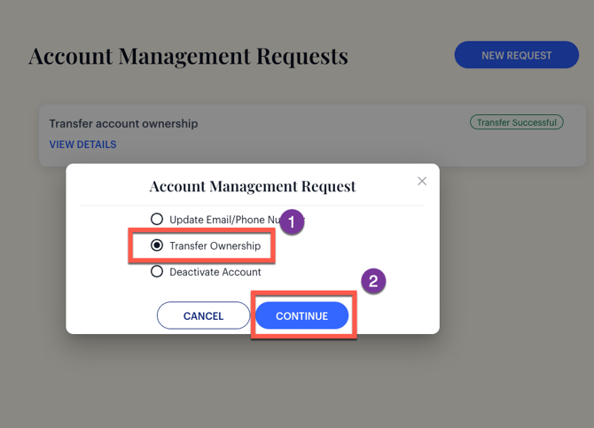 - Once you click "OKAY," you'll be redirected to the Account Management page, where you can track your request's status and view your request history.