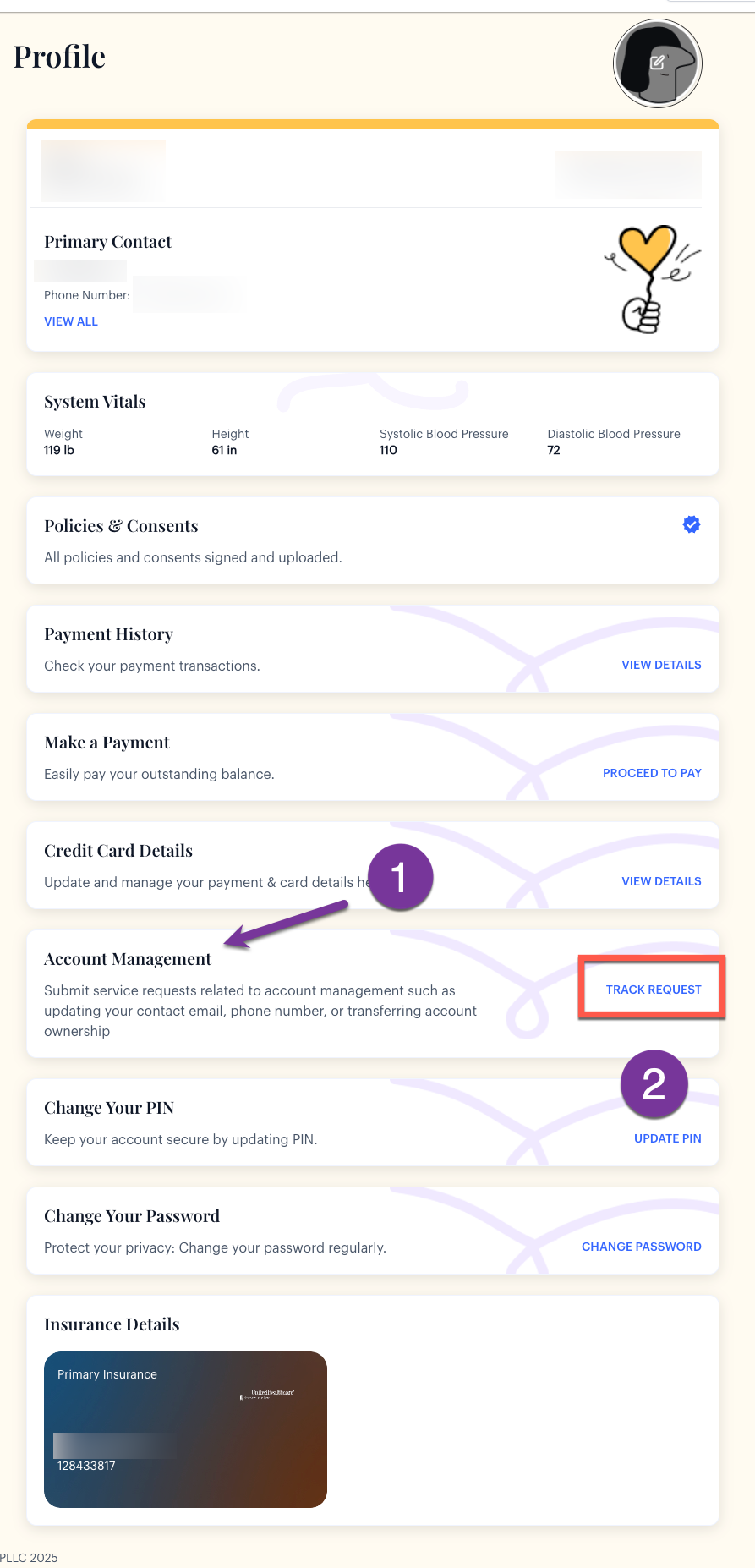 You can return to this page anytime to track your request's status by navigating to My Profile > Account Management.