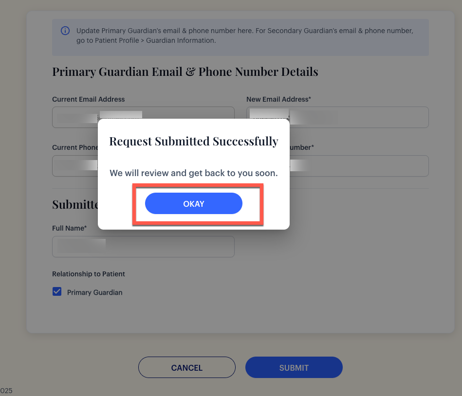 - Your request will be reviewed by MindWeal staff. If approved, you will receive an email notification. Additionally, an email will be sent to the new proposed guardian with a link to an online form to accept the role of primary guardian.