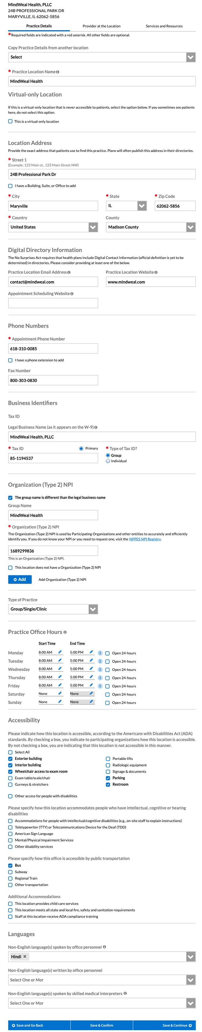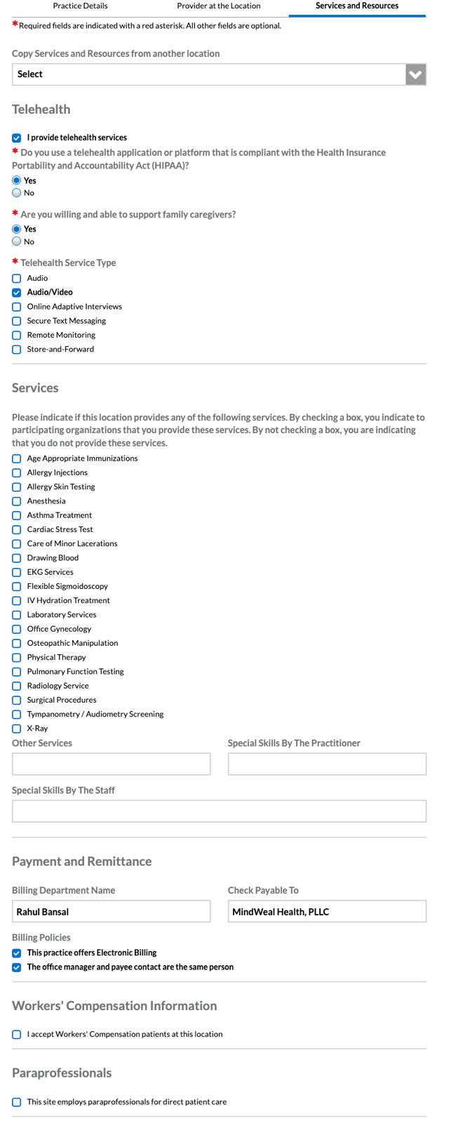 Please complete all sections. Certain sections must be completed according to MindWeal’s business structure and operational requirements. Below are the sections that need to be filled out in a specific way: