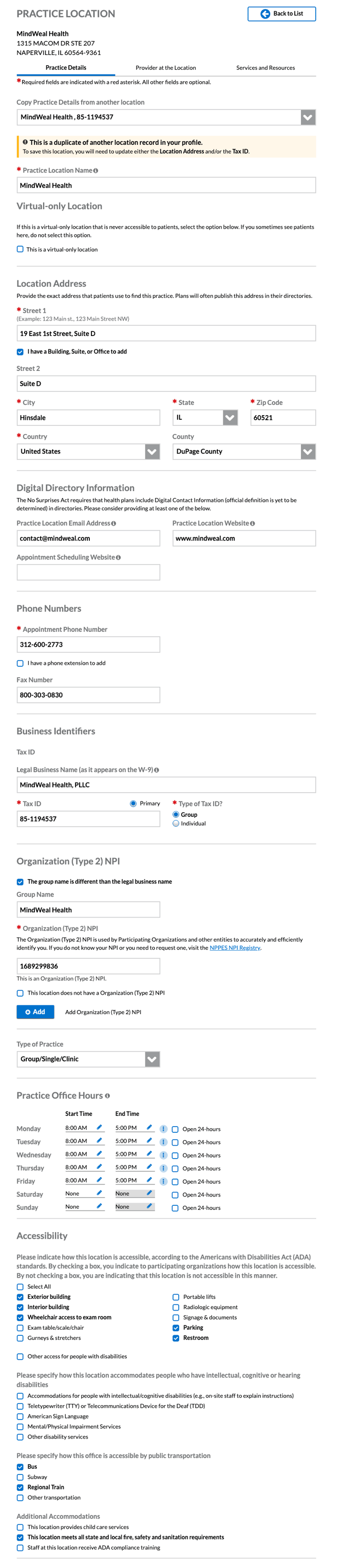 - Address: 19 East 1st Street, Suite D, Hinsdale, IL - 60521